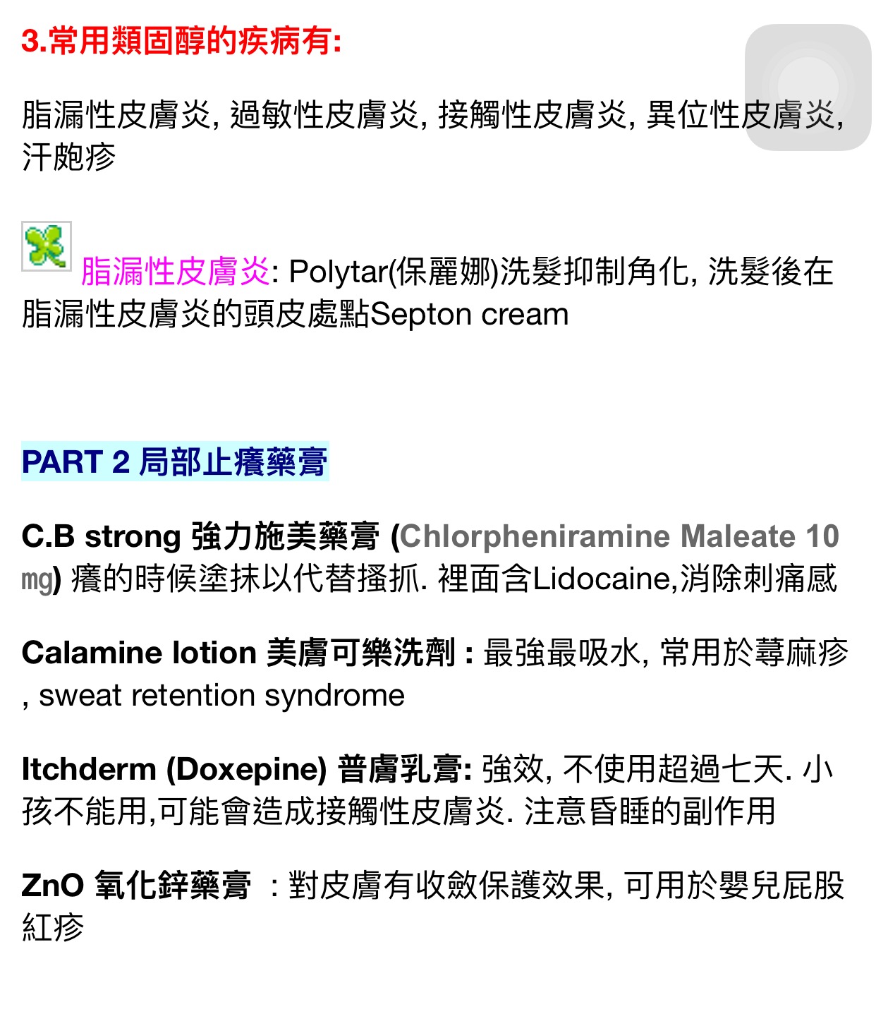 皮膚科用藥概要