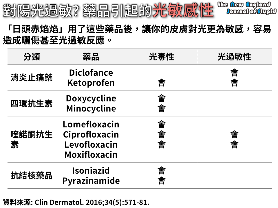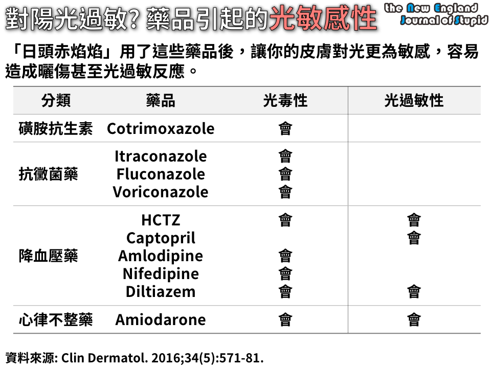 | ▲醫學文獻中報導過可能增加光敏感性的藥品。