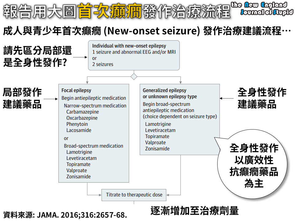 | ▲刊登在JAMA上的成人、青少年首次癲癇發作處理建議流程